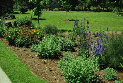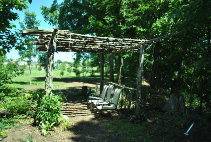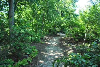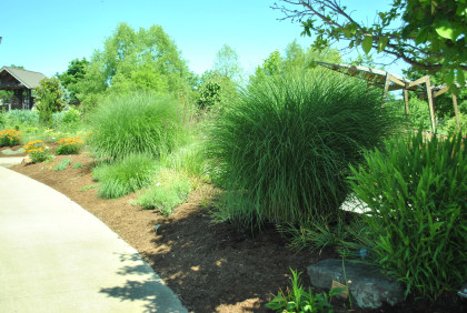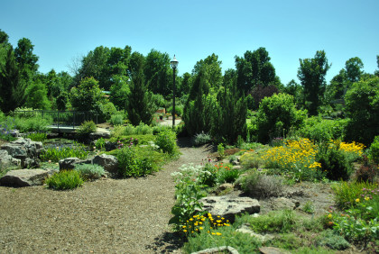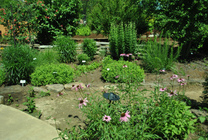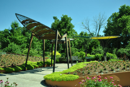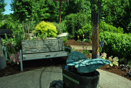 The Ozark Native Garden which features flora native to Arkansas with a wide variety of flowers, grasses and shrubs. A small native stream flows through the garden and there are two shaded "front porch" swings. This garden was designed by Lisa Netherland and Jo Carlole Haxel. The Northwest Arkansas Master Naturalists contribute to the upkeep and landscaping of this garden year-round.