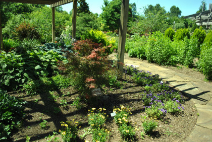 The Shade Garden which features a collection of shade-loving plants, including many that hold their foliage year-round. This garden was donated by the Carl Totemeier family to honor Carl for the contribution he made to the botanical garden and to memorialize his love for the project. Totemeier served as the garden's Volunteer Executive Director from 2001-2004 and was instrumental in the garden's development and planning. The Shade Garden was designed by Yvonne Kirby, a friend of the Totemeier family.