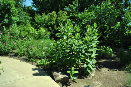 Inside this building. The Butterfly Garden, also known as the "butterfly pathway", leads to the Butterfly House. This garden is filled with host and nectar plants to attract native butterflies. It is certified and registered by Monarch Watch as a Monarch Waystation, which means it provides milkweeds, nectar sources and shelter needed to sustain monarch butterflies as they migrate through North America.