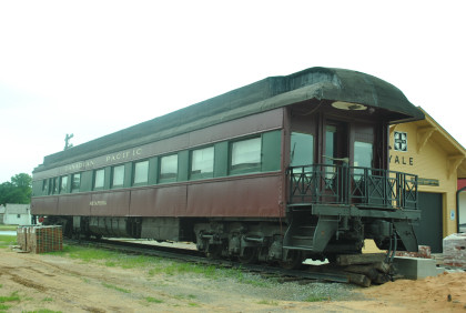 Canadian Pacific observation car "Metapedia" built in 1903. The heavyweight wooden dining car was converted to a parlor car in 1917 then converted to a business car in 1919 and named "Assiniboine". The car was upgraded with a steel undercarriage and side sheathing and was renamed "Metapedia" in 1929. Canadian Pacific retired the car in 1975 at which time it went into private ownership. The Kenneth Mitchell family donated "Metapedia" to the Oklahoma Territorial Plaza in 2013.