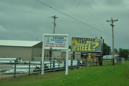 The Railroad Yard "We deal in Steel" has a caboose out by the highway.