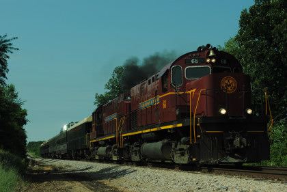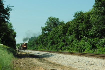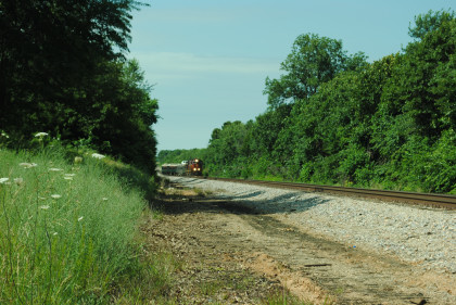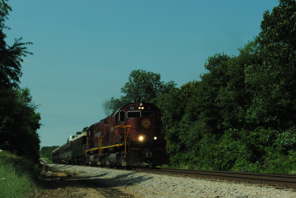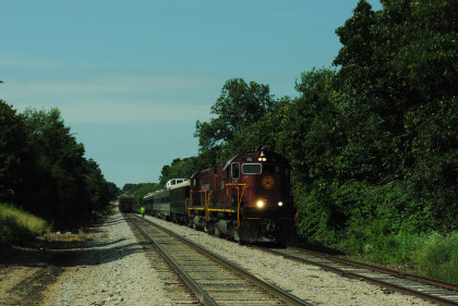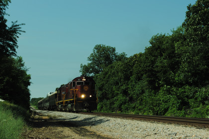 Photo runby of our train. We reboarded the entire train at my two doors of cars 105 and 106 and headed to Monett. Once we reached Purdy, I was on new rail mileage the rest of the way.