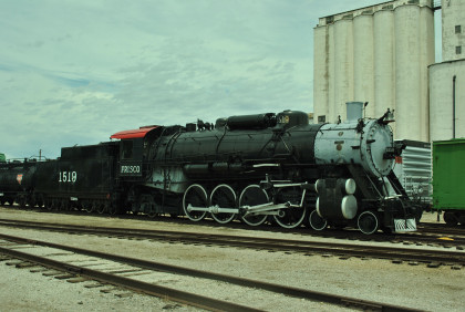St. Louis-San Francisco 4-8-2 1519 built by Baldwin in 1925. The engine and tender were presented to the City of Enid and placed on display in a park near St. Mary's Hospital in November 1954 and moved to the museum in December 1997.