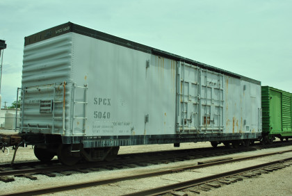 SPCX box car 5040 used as a tool car on a Qwest cable construction train.