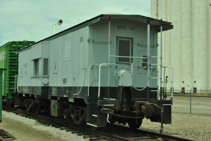 Southern Pacific caboose 55 built by International Car and used on a Qwest cable construction train.