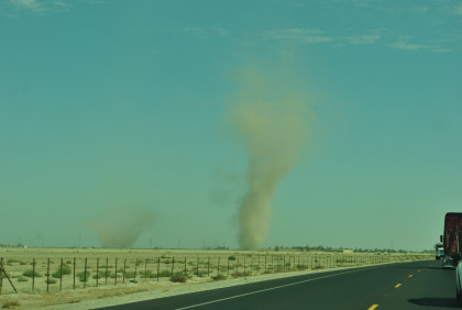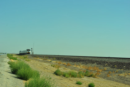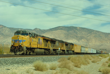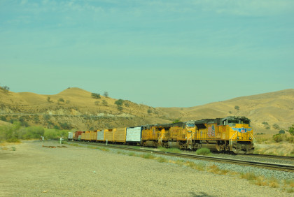 This blocked my view of Union Pacific 7715 East. We took a break in Tehachapi before we resumed our drive east, taking the old highway to beyond Monolith then headed east on California Highway 58 to the Mojave exit where we caught up to Union Pacific 7715 East.