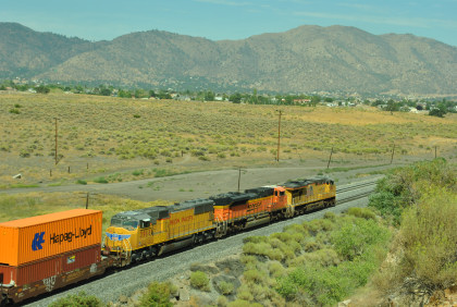 Union Pacific 7715 East dropping into Mojave. We took California Highway 14 south to Avenue S in Palmdale, to Sierra Highway south to Pearblossom Highway east to California Highway 138 to Cajon Pass, where we took one last break at McDonald's. From there, it was Interstate 15 to California Highway 60, to California Highway 57 to the Main Street exit in Santa Ana then local streets to home. It had been a fantastic trip with my mother on this Summer Vacation 2014 trip.