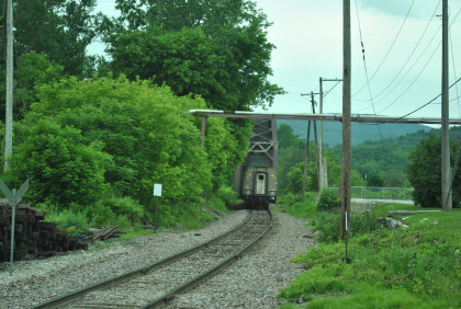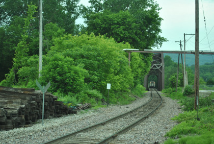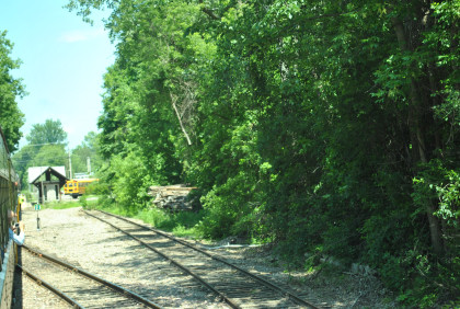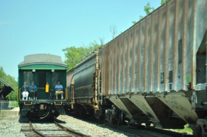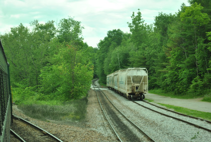 Down at the end of the road. The train stopped at Charlotte at the old commuter station for a photo runby of a Vermont Railroad freight.