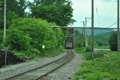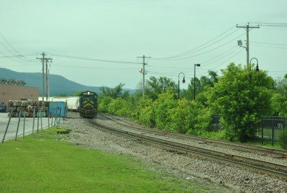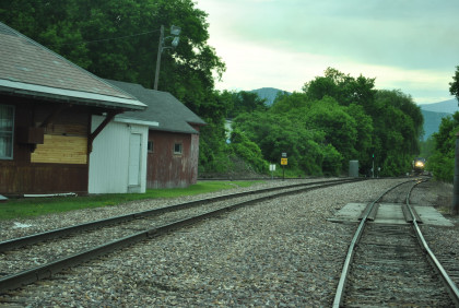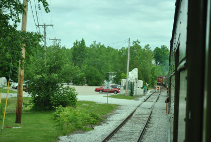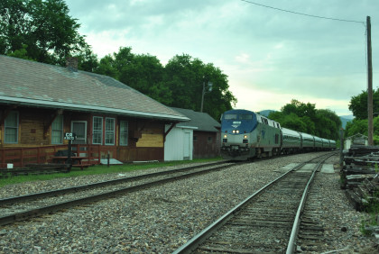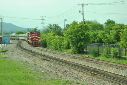 Our passenger train came up the siding as the Rutland Switcher came down the mainline then passed the Amtrak station and came back to it on the mainline.