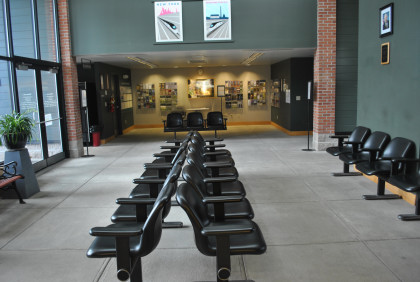 The inside of the Rutland Amtrak station. First an NRHS member dropped off the new box of Convention trip guidebooks then Bart Jennings arrived and I gave him the box.