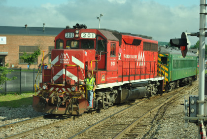 This trip would be a rare mileage trip from Rutland to the Omya processing plant on the remains of the original Clarendon & Pittsford Railroad near Florence, Vermont. My new mileage would be from Florence into the plant. After the NRHS trip safety meeting on the train, we boarded the passengers and soon took tickets and I distributed Omya Rocks to each passenger. This was only the second passenger train to operate on this line in modern times.
