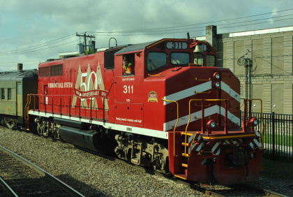 The special paint scheme on Vermont Railroad 311. With the buses abnormally running late from the Holiday Inn, I walked south and saw drones in the air for the first time in my life.