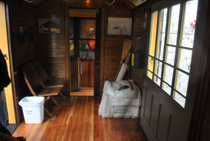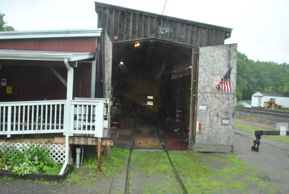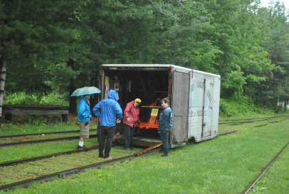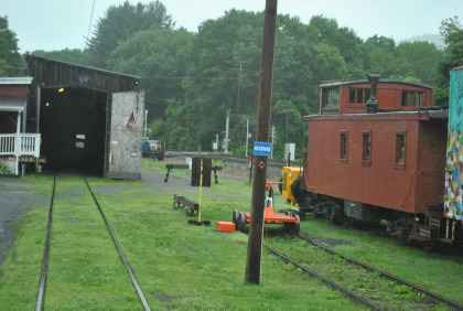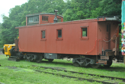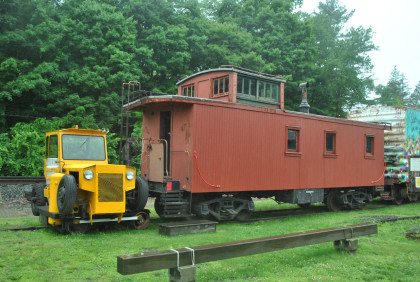 Central Vermont wooden caboose 4015 built by the railway in 1910 and worked between St. Albans and New London, Connecticut, passing through western Massachusetts regularly. It was sold to the Green Mountain Railroad before being retired in 1978 to be used as a poolside cabin in Amherst, Massachusetts. It came to the museum in 2000, and is being restored.