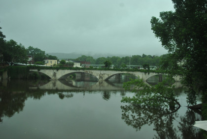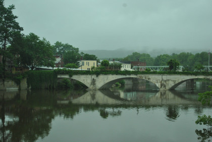 First the Bridge of Flowers which once carried the trolley over the river here in Shelburne Falls.