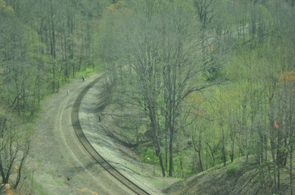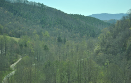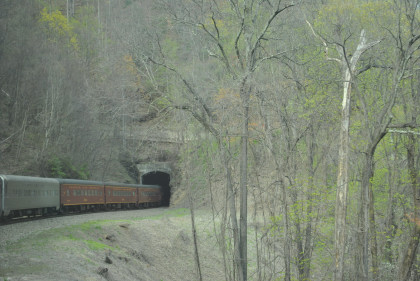 One last view down. We went through Mud Cut, the 123 foot Jarrett's Tunnel, the 589 foot Licklog Tunnel, the 77 foot McElroy Tunnel, the 494 foot High Ridge Tunnel, then 250 foot Burgin Tunnel, followed by the 1,832 foot Swannanoa Tunnel, which passes beneath the Eastern Continental Divide.