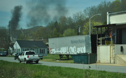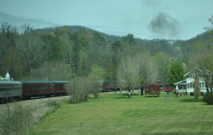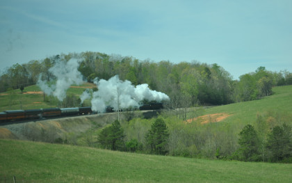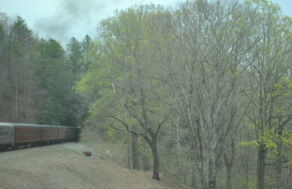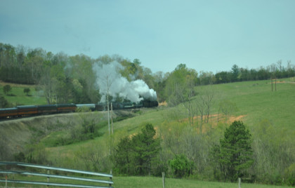 We could follow the smoke from Norfolk and Western 611 as we climbed.