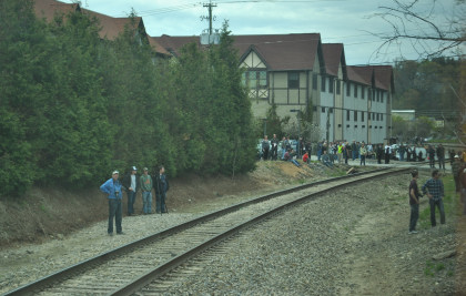 The railfans, families and many passengers, including David, were trackside to watch Norfolk and Western 611 wye the train.
