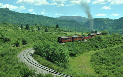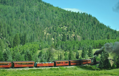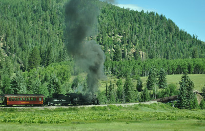 At a grade crossing just below Colorado Highway 17, we took our final pictures of our fantastic chase of the Cumbres and Toltec Scenic Railroad then made our way to Antonito.