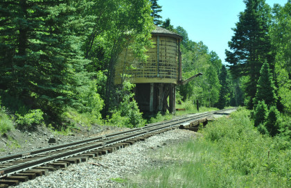 Passing the over one hundred-year-old Jukes Tree, a Ponderosa pine named for photographer Fred Jukes, who captured the line (and this spot) in the early 20th century. Robin and I took off after the train in chase mode.