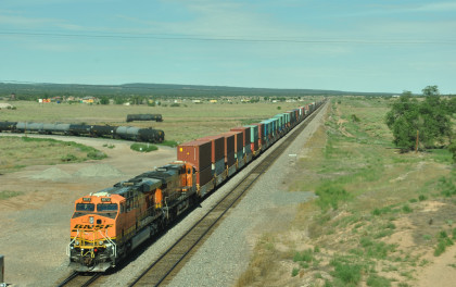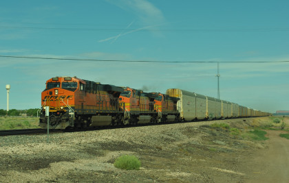 BNSF 7090 East at Baca Road. We drove west but a train caught up to us.