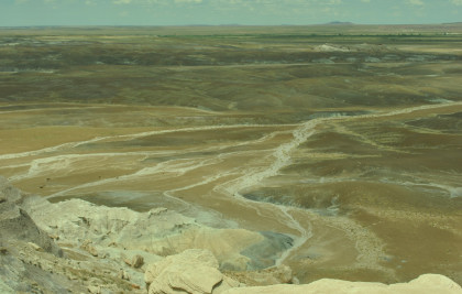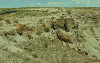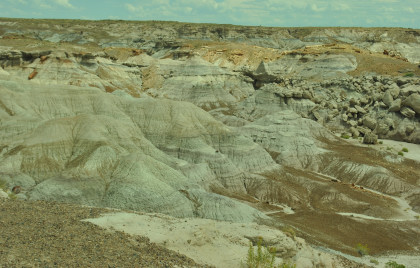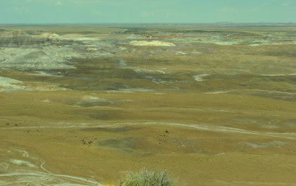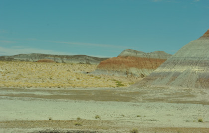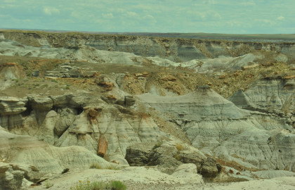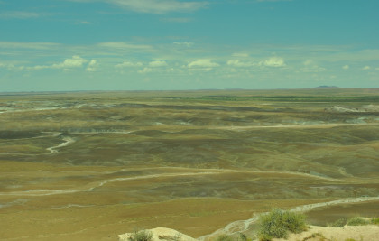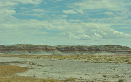 BNSF 7124 West at Manuelito. Robin and I made our way into Arizona and stopped at the rest area then it was back on Interstate 40 to the exit for the Petrified Forest. Since we saw the Painted Desert eastbound, why not visit the Petrified Forest westbound? Robin used his card to get us in and we bypassed the Painted Desert and almost made it to the bridge over the BNSF mainline.