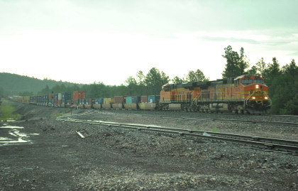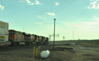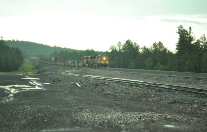BNSF 5476 West at Maine. We returned to Interstate 40 and the rain became harder and one could only safely drive at 50 mph for the next hour as the good drivers stayed at the below the speed limit and those bad ones flew by. Once I neared Seligman, I decided to leave Interstate 40 for US 66 with a lot less traffic then as we approached Peach Springs and returned to the sunshine, I stopped.
