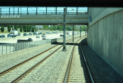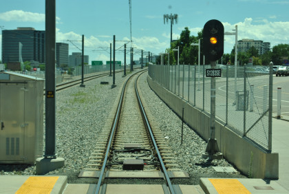 While traffic was bunching up on Interstate 25, we rapidly moved along the tracks to Colorado station.