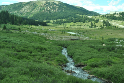 Crossing the Arkansas River very near its headwaters.