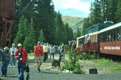 Our passengers getting off the train and I was at the east end of the group making sure no one went down the tracks until the train finished reversing. The conductor and I would lead the passengers to the upper photo locations.