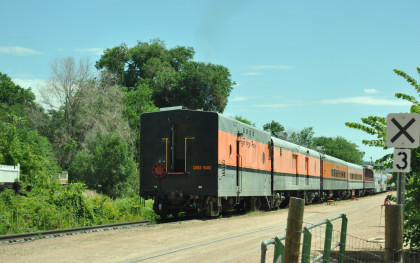 Royal Gorge Railroad F7A 402, nee Chicago and North Western 4075A built by Electro-Motive Division in 1949 also in the picture. It was at this point I walked through the dome cars and checked the open cars to make sure all our passengers were well.