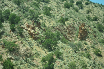 Hanging BridgeA highlight of the gorge route is the 1879 hanging bridge located along the north side where the gorge narrows to 30 feet and the sheer rocks walls plunge into the river. Designed by Kansas engineer C. Shallor Smith and built by Santa Fe construction engineer A.A. Robinson for $11,759, the bridge consists of a 175-foot plate girder suspended on one side under A-frame girders that span the river and are anchored to the rock walls. Strengthened over the years, the bridge remains in service today.
