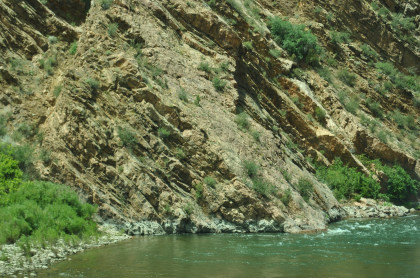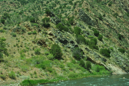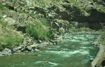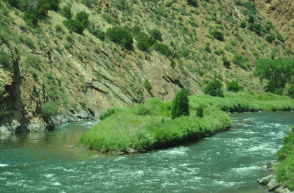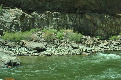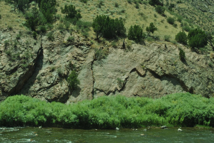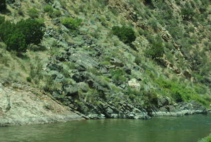 Large pieces of rock had fallen from the cliffs into the Arkansas River.
