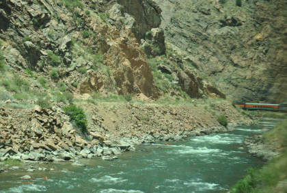 The train is now closer to the Royal Gorge Suspension Bridge and at the deepest part of the canyon.