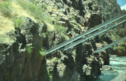 The water supply for Canon City crosses the Arkansas River on a bridge.