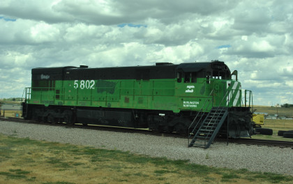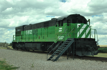 At Mine Park, Burlington Northern U30C 5802, nee Burlington Northern 5032, built by General Electric in 1972, is on display.