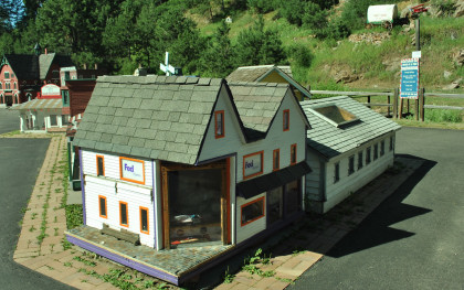 1948 Model of filling station (gas station)A stroke of the pen may have been more devastating to Tiny Town than these floods and fires. On January 28, 1948, plans were approved to reroute Highway 285 from in front of Tiny Town. This took it from the everyday view of those who used 285.
