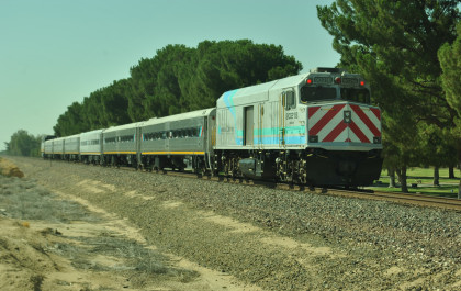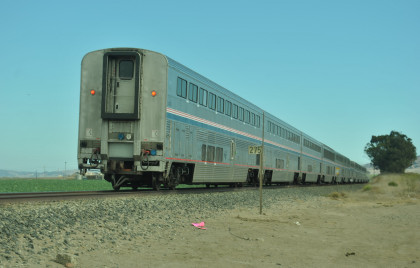 Amtrak San Joaquin 717 at Burbank Street. From here we took Santa Fe Road to the Rosedale Highway then checked into the Clarion Inn in Bakersfield and had another excellent dinner at the Hungry Hunter. After dinner, I wrote this travelogue then called it a night.