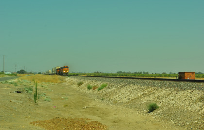 8/12/2016 This day after a McDonald's breakfast, I drove California 198 to California 41 to Fresno and a brief stop, then California 99 to Road 20 1/2, taking my mother on the way we used to go to Winterail when that event was in Stockton. We caught our first train of the day south of LeGrand.