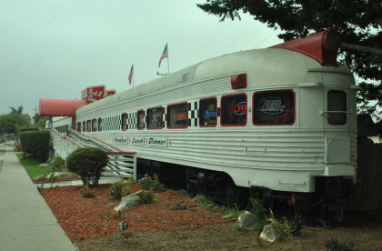 Rock N' Roll Diner in Grover Beach, housed in former Seaboard Air Line lounge car 6605 built by Budd in 1947 and used on the Orange Blossom. It later became Seaboard Coast Lines 5845 then Amtrak 3345.