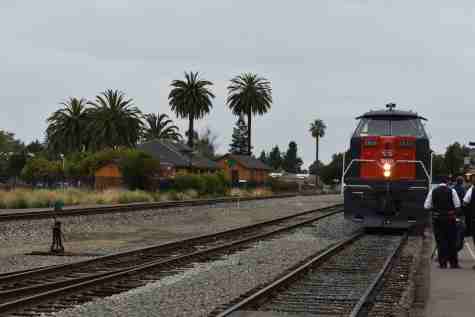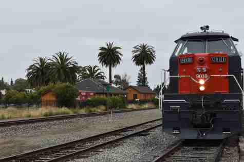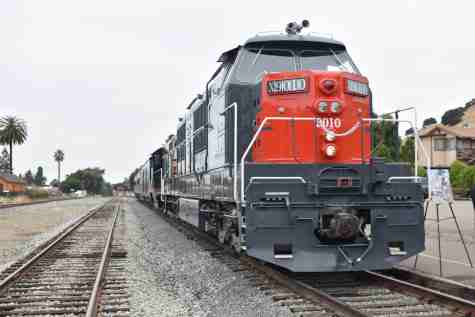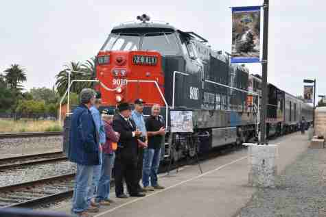 Our train we will be riding at 10:00 AM. The train consisted of KML 4000 9010, Southern Pacific Black Widow GP9 5623, Southern Pacific Baggage Car 6719 and Southern Pacific articulated coaches 2453 and 2454. I would be riding in coach 2454.