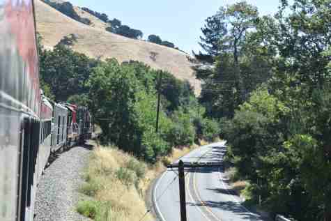 The trip started so I went to the rear vestibule for a good picture. I was on new mileage until we reached the east switch of the wye. We went through Niles Canyon, stopped at the stairs and detrained, leading the way to the photo line at the top of the hill.