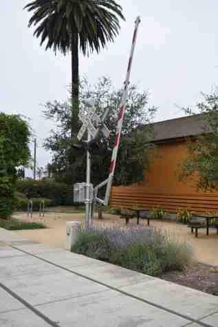 A crossing gate. I went to Walmart to pick up a few items before returning to the parking lot across the tracks then checked in at the Niles Canyon Railway, receiving a gift and my train ticket.