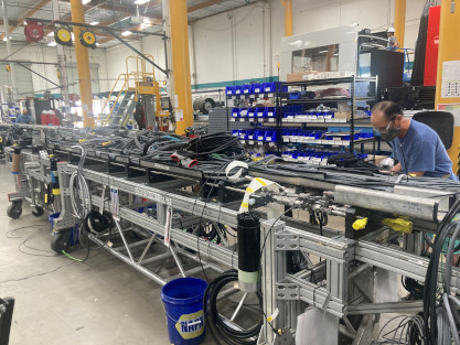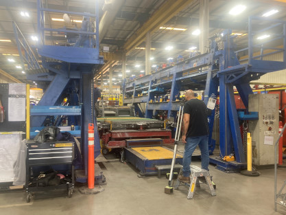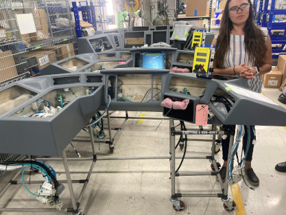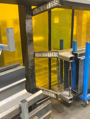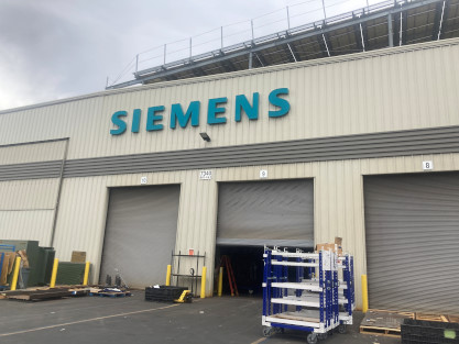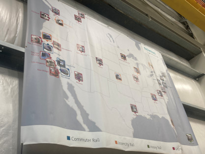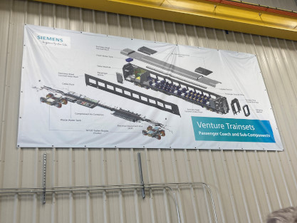 All pictures by Elizabeth Guenzler as my camera battery was not at full power.The Siemens sign on one of their many buildings. Hailey Rumsey of the Communications Department and Eberhard Lange, Head of Manufacturing, met us in the lobby of Building 4 and acted as our guides, with the department manager of each manufacturing floor covering operations for their area. The tour included the locomotive and Venture passenger car assembly buildings, the LRV manufacturing floor, the welding shop and the electrical shop where teams hand-assemble wiring harnesses for all products.
