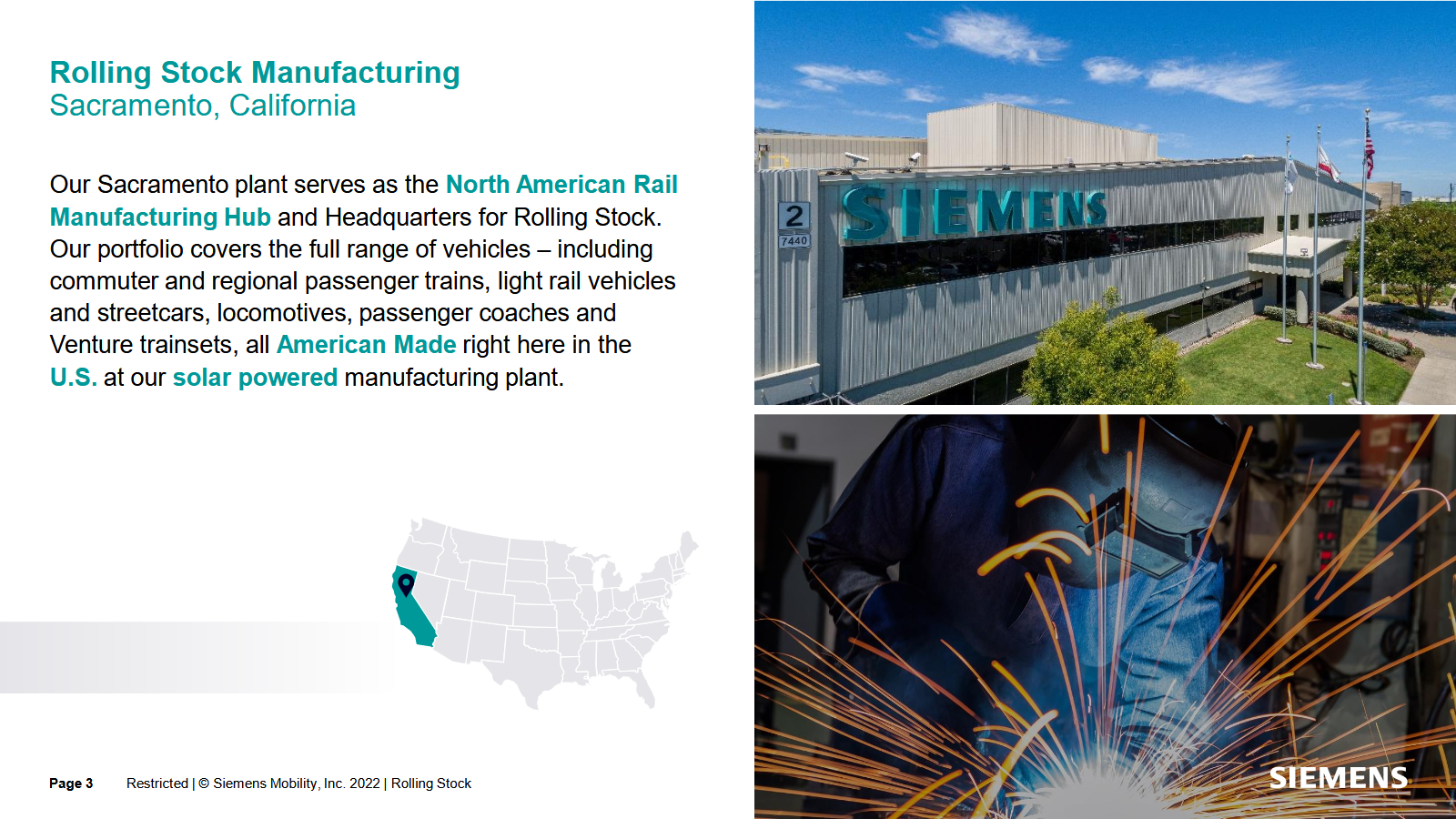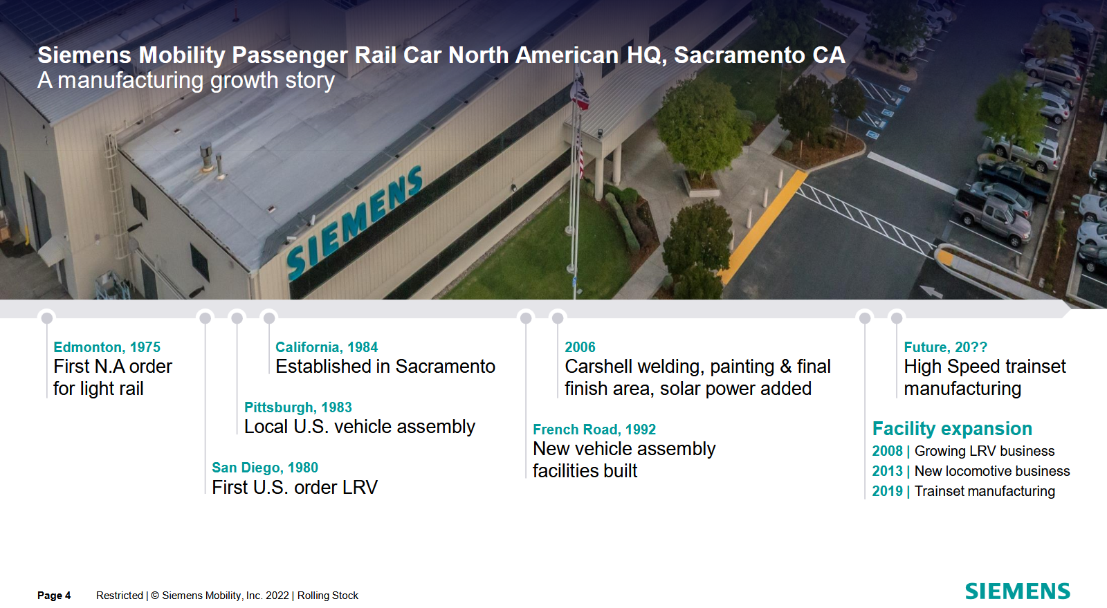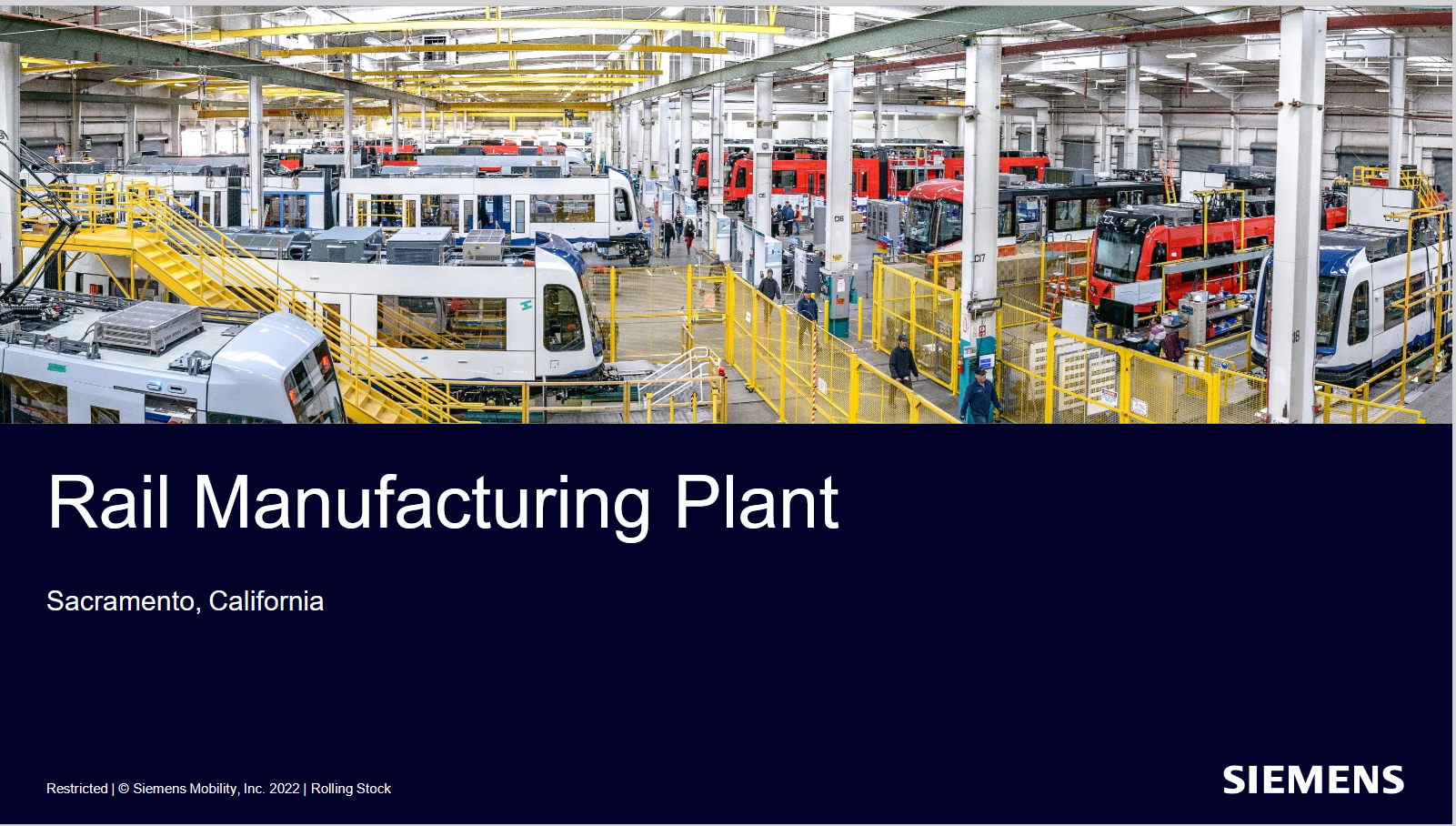 Both Elizabeth and I are members of the Central Coast Chapter of the National Railway Historical Society. It was announced in the spring that Steve Ferrari, Chapter President, had organized for a tour of the Siemens Mobility Plant in Sacramento to occur on August 14th.