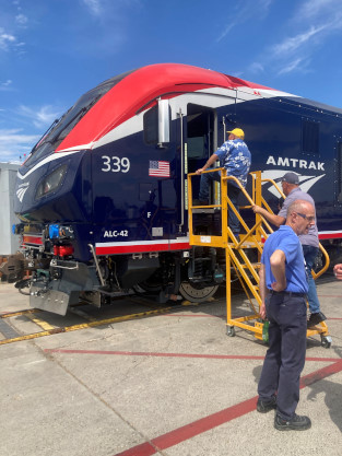 Amtrak SC-44 339, a newly-finished Charger locomotive, built by Siemens in 2022. Everyone was allowed to go inside.