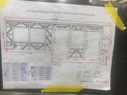 San Diego/Sacramento left hand sidewall complete critical dimension sheet.