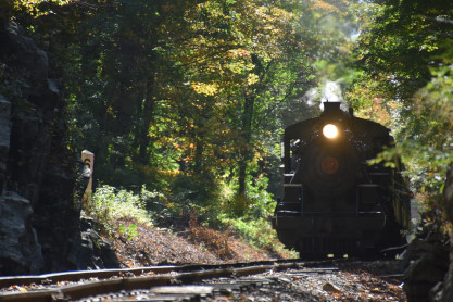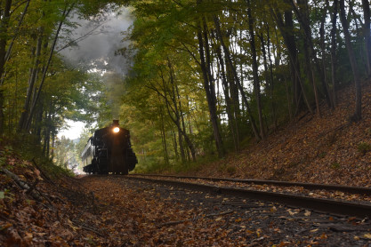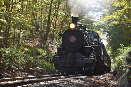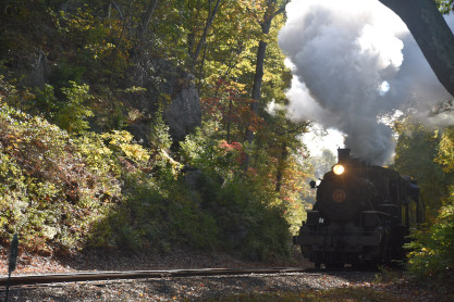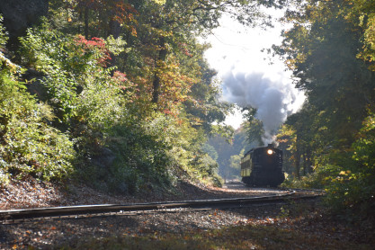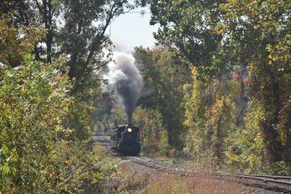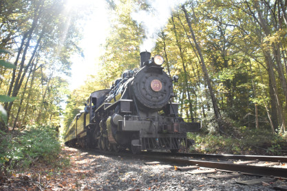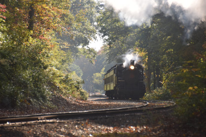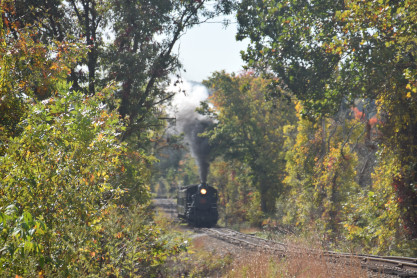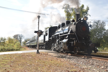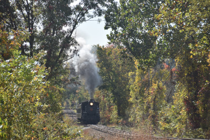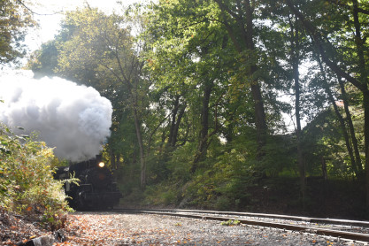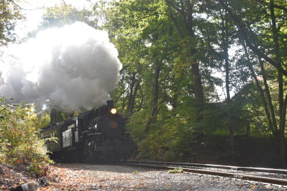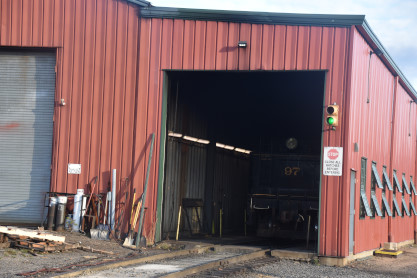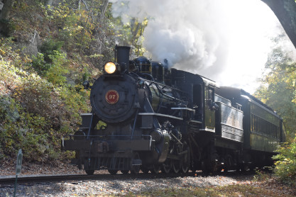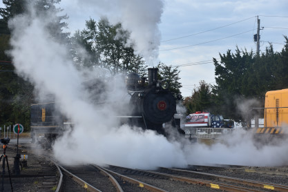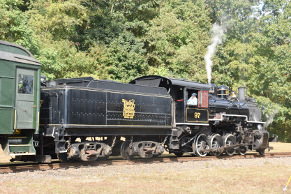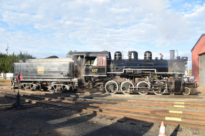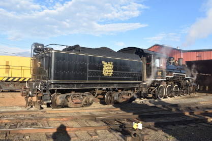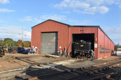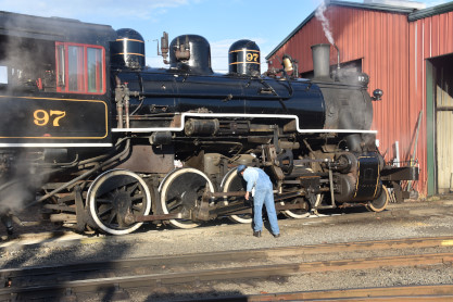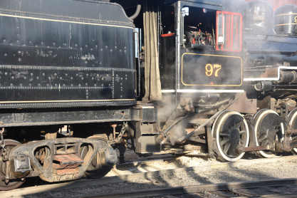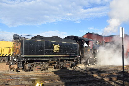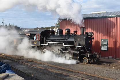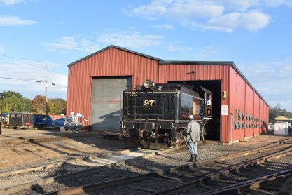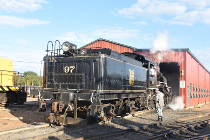 Valley Railroad 2-8-0 97 reversed out of the engine house.