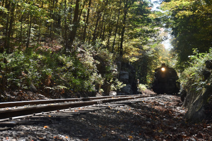 Photo runby ten at the rock cut at Canfield Woods, Milepost 6.0.