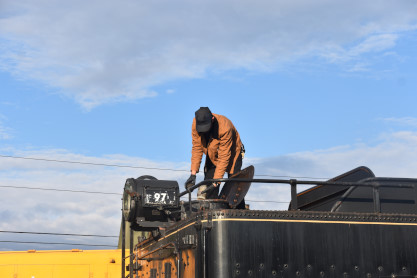 An employee oiling the engine. It was fascinating to watch the crew prepare the locomotive for the day.
