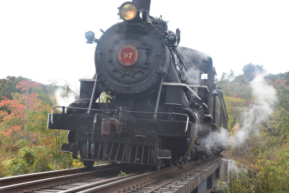 Valley Railroad 2-8-0 97, ex. Vermont Railroad 97 1964, exx. Stephen D. Bogen 97 1963, exxx. Birmingham and Southern 200 1926, nee constructed for stock by American Locomotive Company in 1923. On the Birmingham and Southern, an Alabama shortline, it pulled freight and passenger trains until 1958 when it was retired and stored. It was then purchased by a New York publisher and moved to Essex, where in 1972, it began a new career pulling trainloads of tourists for the Essex Steam Train and Riverboat.